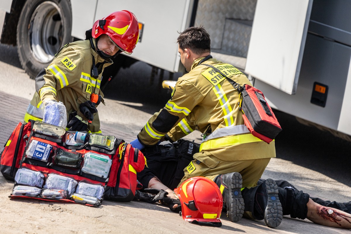 Zainscenizowanych epizodów było jednak więcej. W kolejnym ćwiczono niesienie pomocy przy okazji katastrofy policyjnego śmigłowca z sześcioma osobami na pokładzie, który rozbił isę na terenie lasu w Zmyślonej Ligockiej. – W wyniku wypadku dwóch funkcjonariuszy doznało obrażeń uniemożliwiających poruszanie się, natomiast pozostałych czterech w wyniku szoku powypadkowego oddaliło się z miejsca katastrofy – opisuje scenariusz ćwiczeń policjantka.