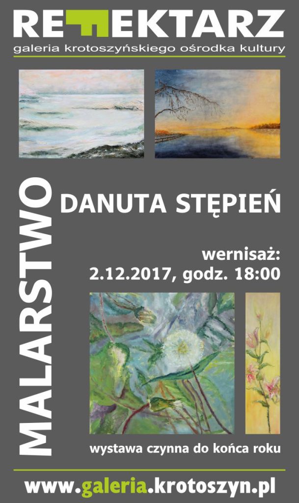 Zapraszamy w sobotę 2 grudnia na ostatnią już w tym roku wystawę do Galerii Refektarz Krotoszyńskiego Ośrodka Kultury. Swoje obrazy oraz trochę ceramiki zaprezentuje krotoszyńska artystka Danuta Stępień. Wernisaż wystawy odbędzie się 2.12 o godz. 18:00 a wystawę będzie można oglądać do końca tego miesiąca i roku.