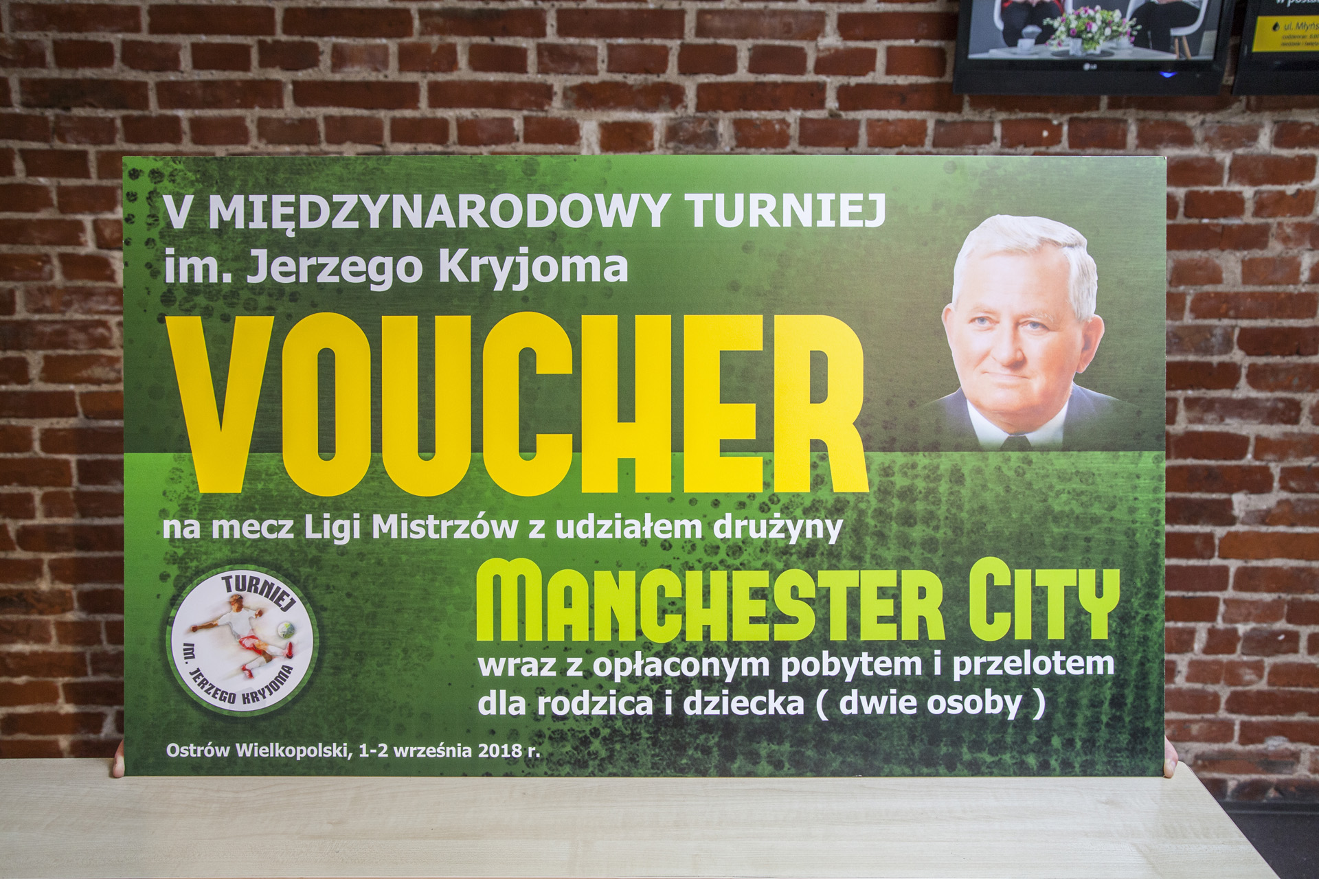 Voucher na mecz Ligi Mistrzów Manchesteru City z opłaconym pobytem i przelotem dla rodzica z dzieckiem (dziecko do 12. roku życia) przekazany przez Michała Wierzbickiego.
