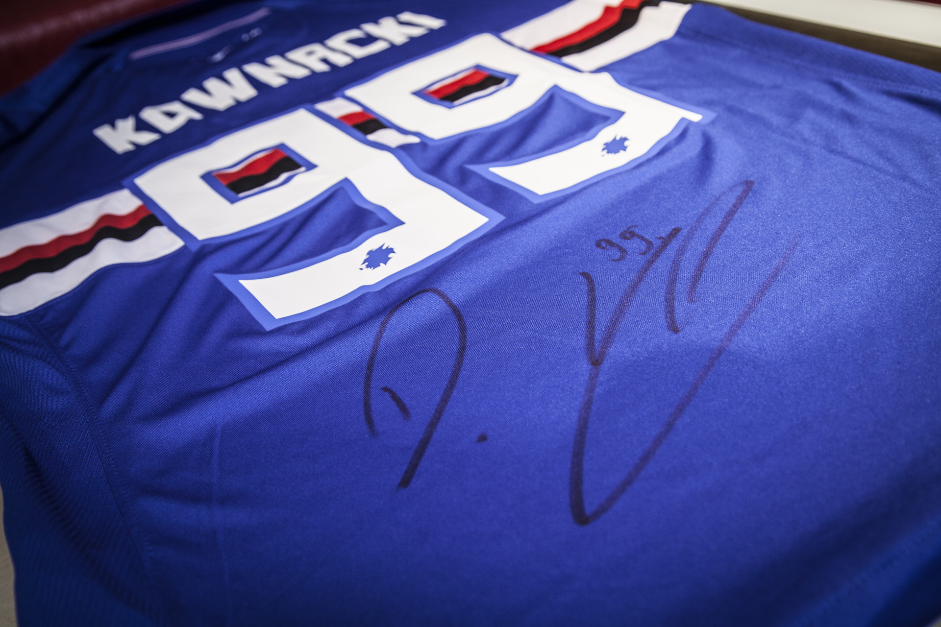Koszulka Dawida Kownackiego (Sampdoria Genua) z autografem przekazana przez niego.