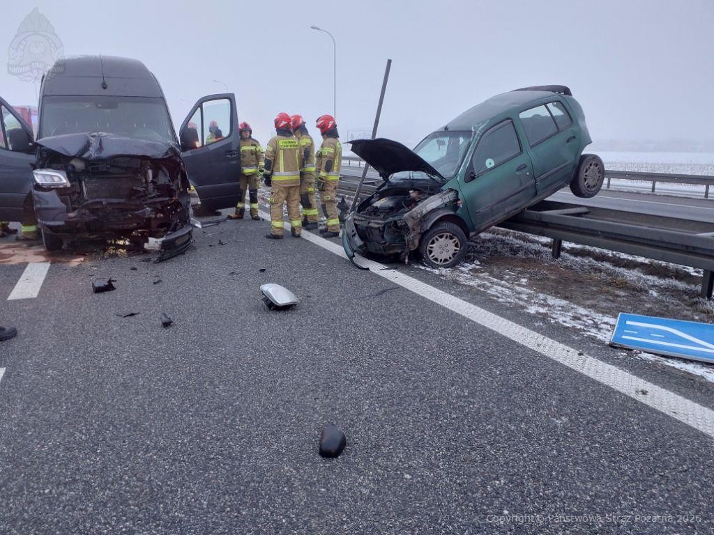 Do zderzenia dwóch samochodów osobowych i busa doszło w czwartek rano na trasie Ostrów-Kalisz, w okolicy Czekanowa. Pojazdami podróżowały 4 osoby, jedną z nich strażacy musieli uwolnić z pojazdu za pomocą specjalistycznych narzędzi.