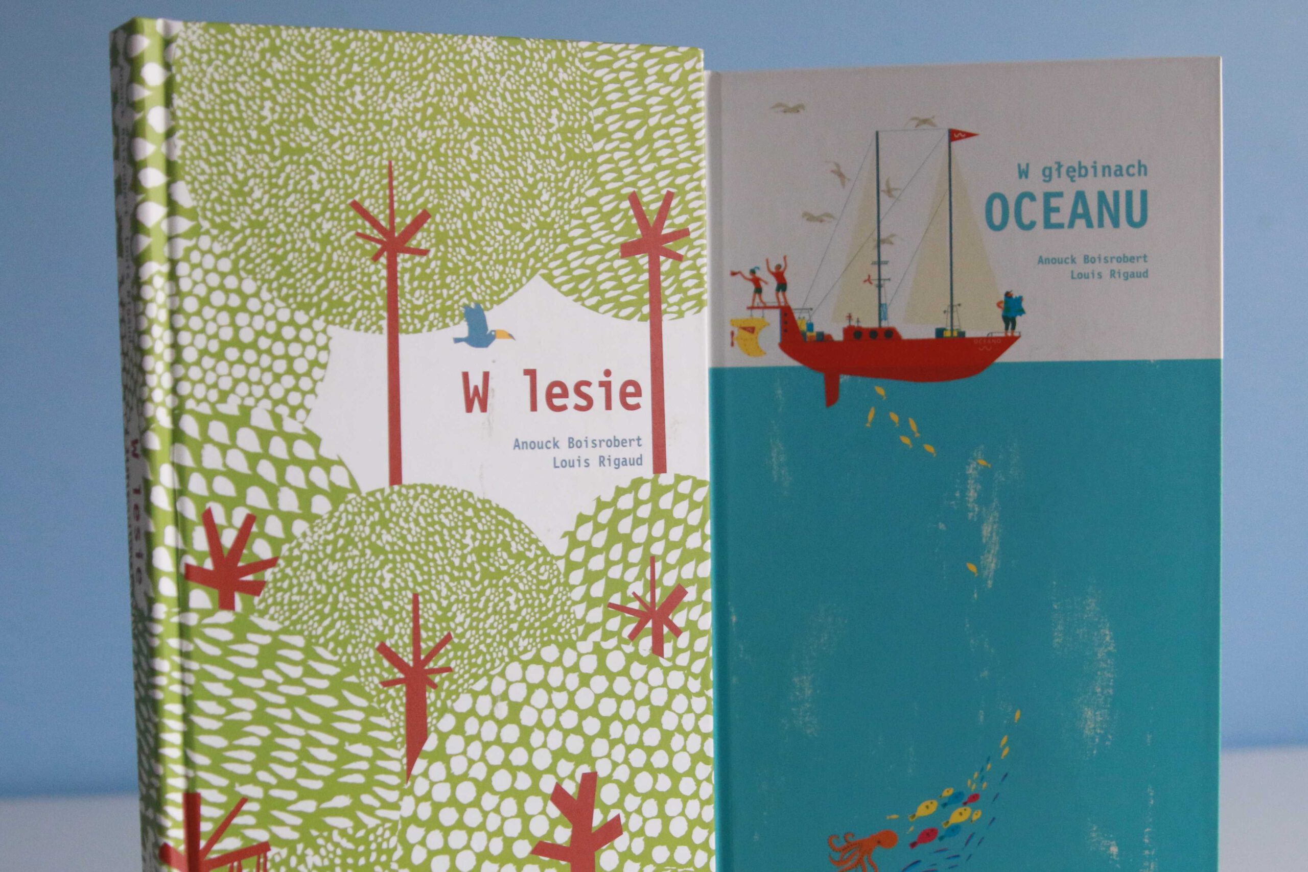 „W lesie” i „W głębinach oceanu” to dwie książeczki, które wyszły w 2017 roku nakładem wydawnictwa Dwie Siostry. I już sama nazwa wydawnictwa zaświadcza, że będą to z pewnością piękne pod względem edytorskim książki.
