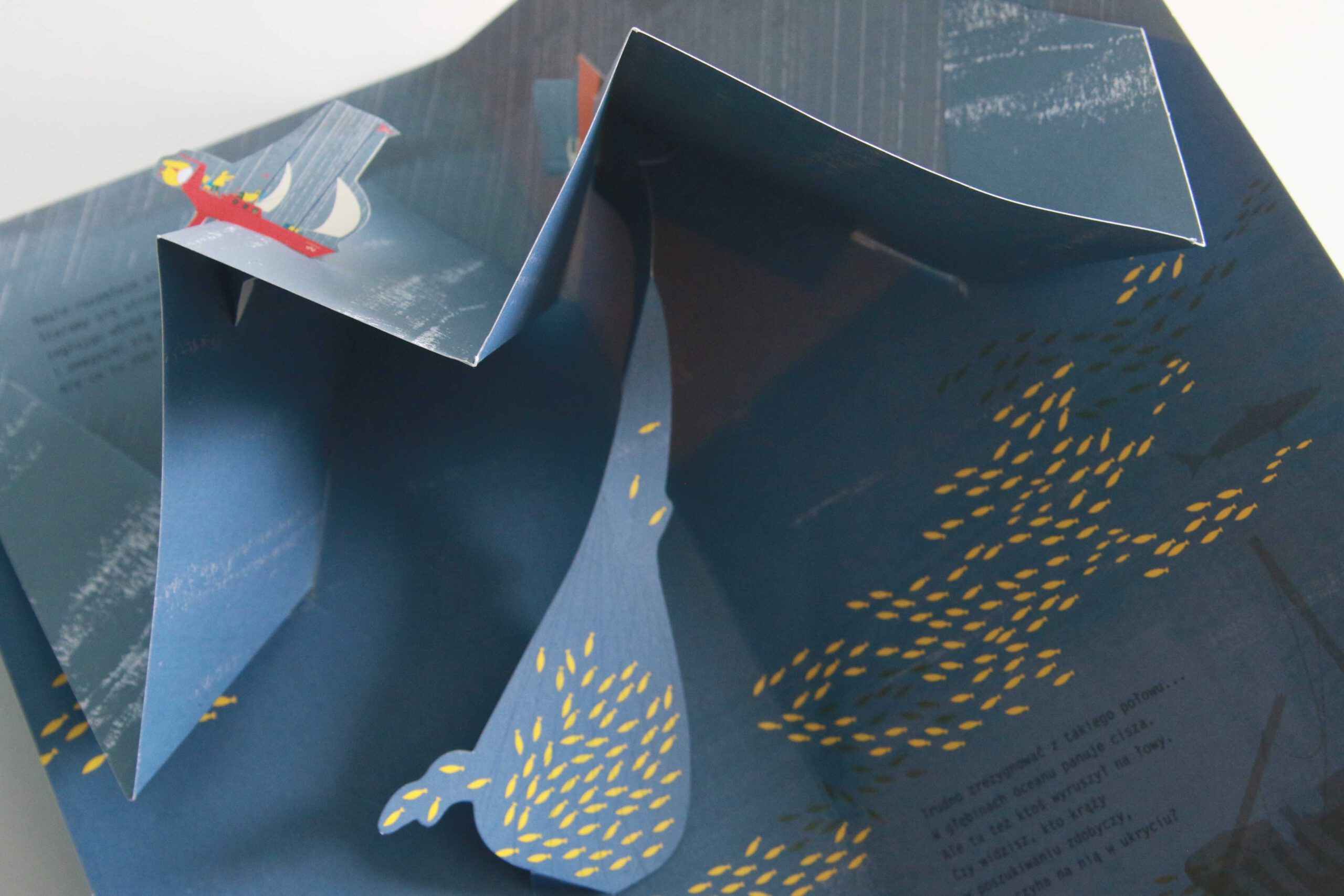 W książce „W głębinach oceanu” na jachcie Oceano wyruszamy w rejs dookoła świata. Bedzie okazja, by przeżyć sztorm, odwiedzić białą Arktykę czy tropikalną lagunę. Dzięki technice pop-up czytelnicy zobaczą to, co niedostępne dla oczu – co kryje się w tytułowych głębinach.