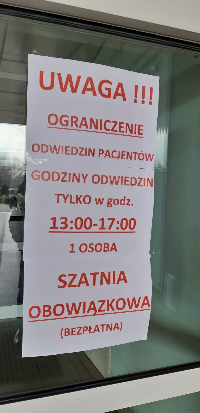 W Kaliszu osoby odwiedzające z jakąkolwiek infekcją nie są wpuszczane na oddziały. Obowiązkowa jest także szatnia. – Pacjenta może odwiedzać tylko jedna osoba jednocześnie. Odwiedziny mogą mieć miejsce w godzinach od 13.00 do 17.00. Po godzinie 17.00 odwiedzający zostaną wyproszeni z oddziałów. Przy wejściu i wyjściu na oddziały należy zdezynfekować ręce. Przygotowane są do tego specjalne dozowniki – informuje Paweł Gawroński, rzecznik kaliskiego szpitala.