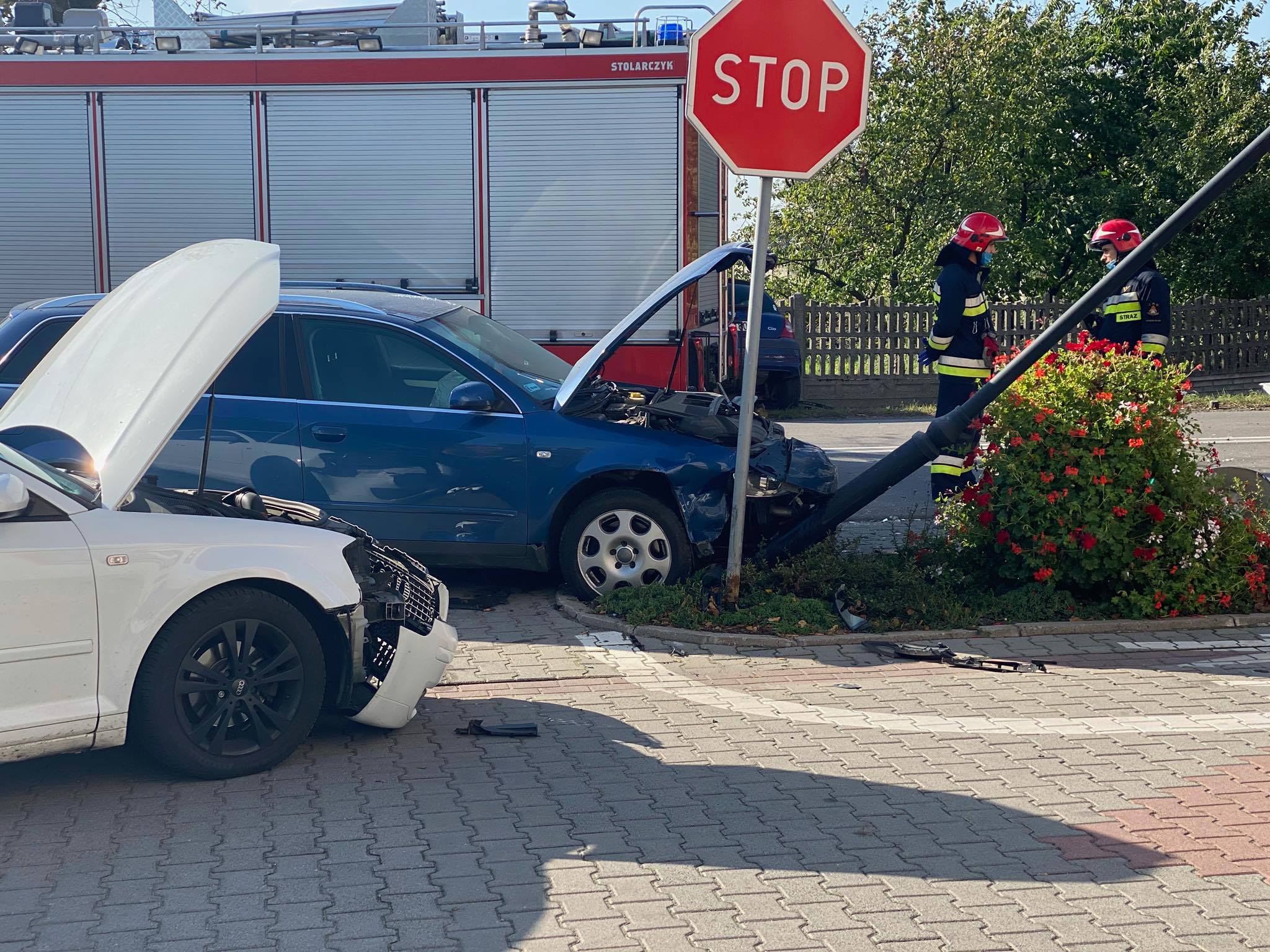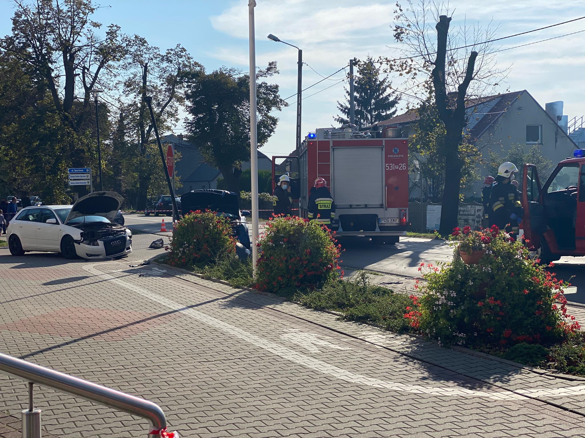 Wyjazd w tym miejscu to nieporozumienie. Nie dość, że rosną drzewa o ogromnych pniach to masowo ignorowany jest zakaz postoju przez klientów sklepików w pawilonach obok Urzędu Gminy. Policji nie ma, a wójt z tym nic nie robi. Kwestia czasu a będzie tam na prawdę poważny wypadek.