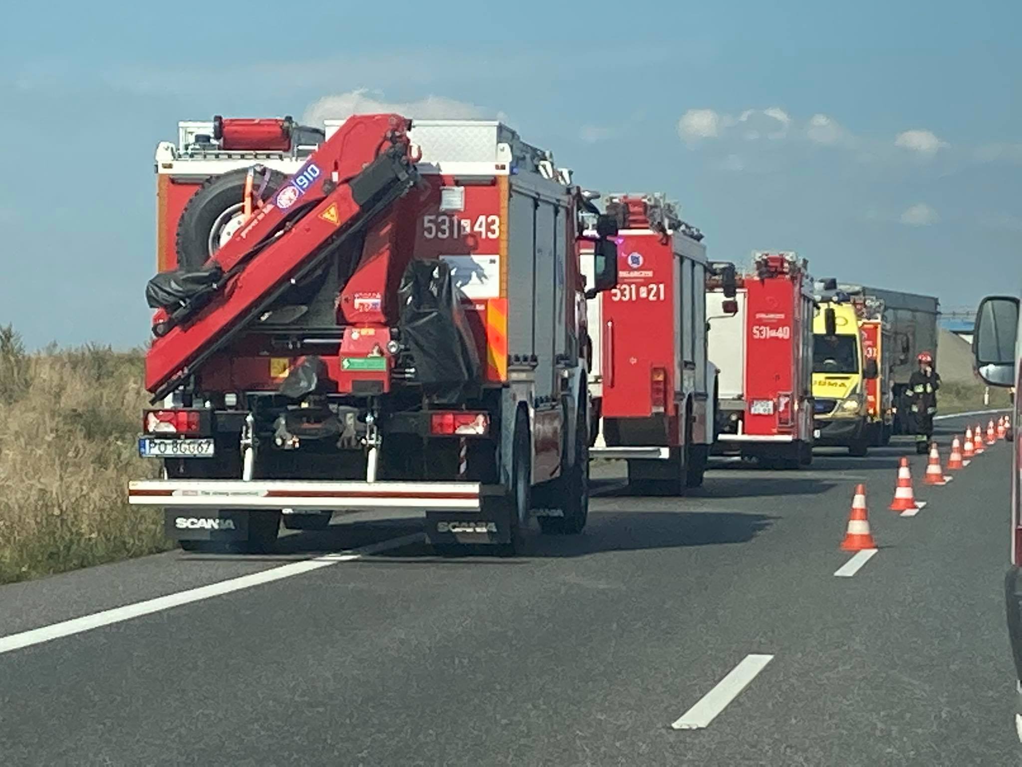 Na miejscu pracują wszystkie służby ratunkowe. – Kierowcy opuścili pojazdy o własnych siłach. Jeden z nich jest zaopatrywany na miejscu przez zespół ratownictwa medycznego. Jeden z pojazdów przewrócił się na bok i blokuje pas ruchu – poinformował dyżurny stanowiska kierowania PSP w Ostrowie Wielkopolskim.