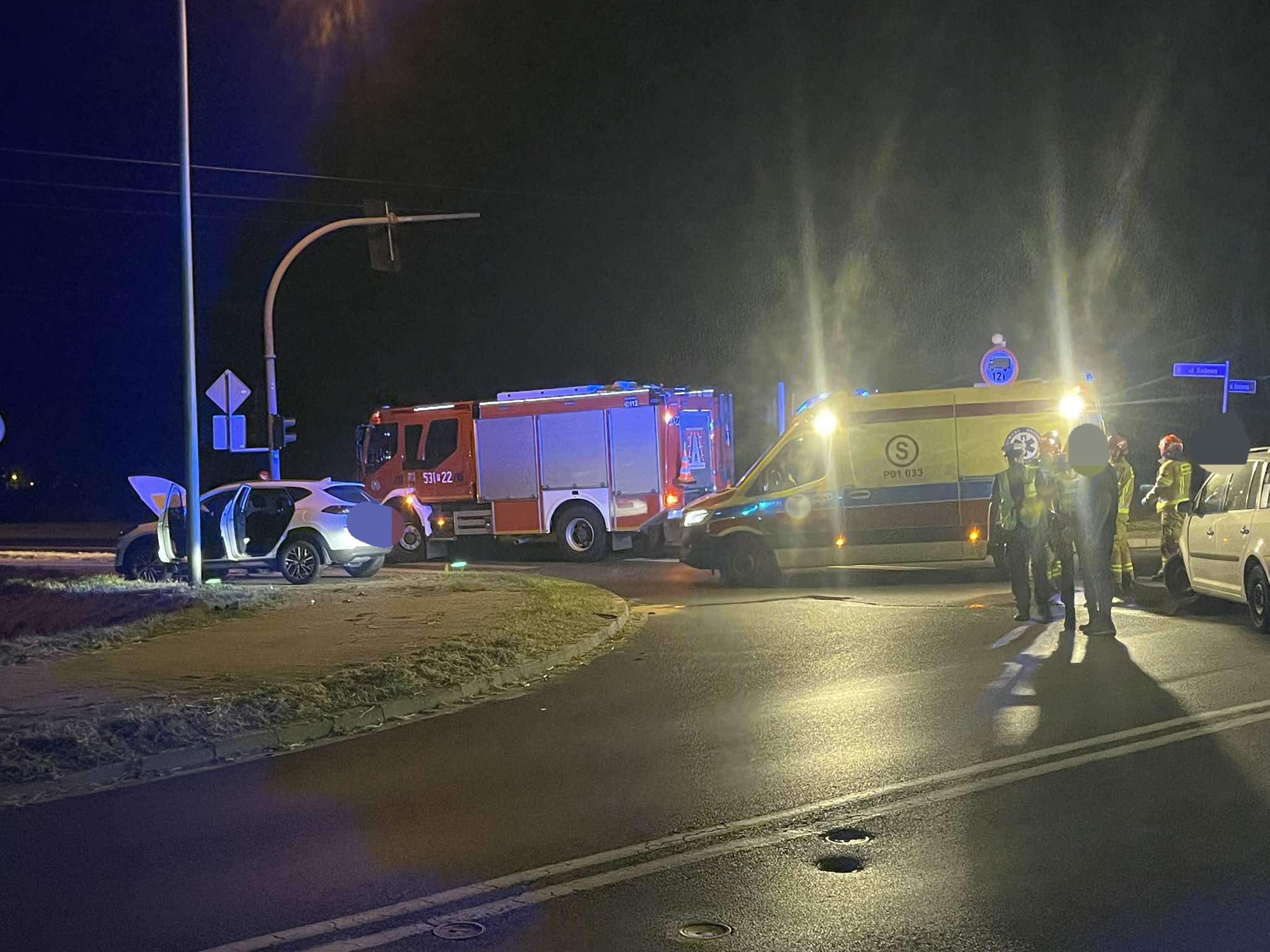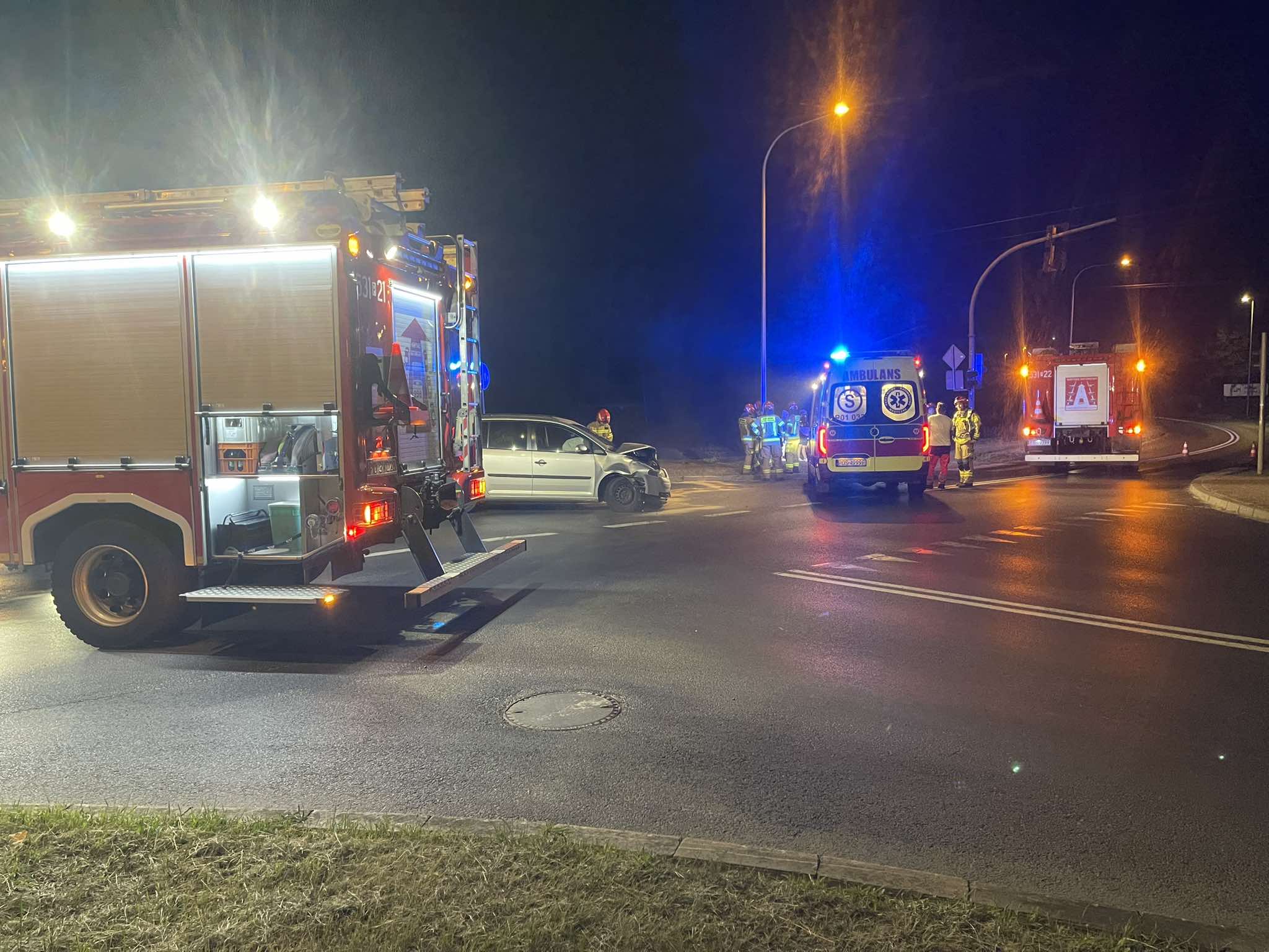 Do wypadku z udziałem volkswagena i hyundaia doszło w nocy z soboty na niedzielę. Na szczęście uczestnicy zdarzenia nie odnieśli poważnych obrażeń.