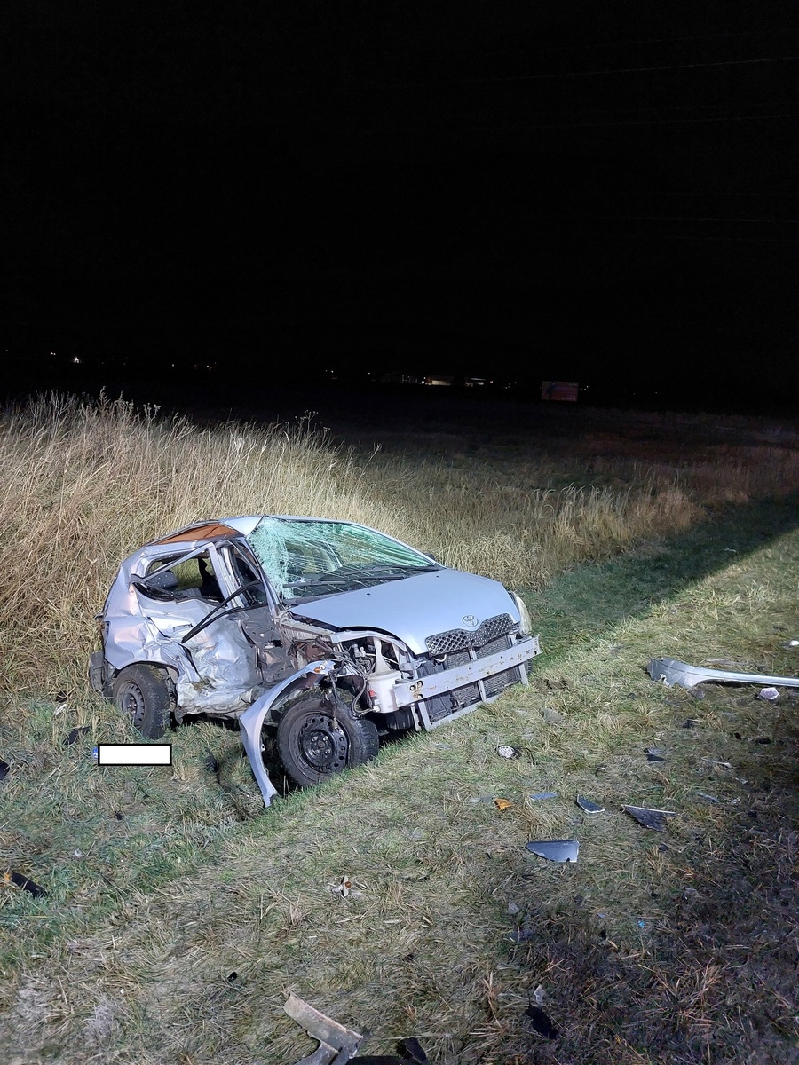 Kobieta i mężczyzna z ciężkimi obrażeniami ciała zostali przewiezieni do szpitala w Kępnie.  Funkcjonariusze grupy dochodzeniowo-śledczej zabezpieczają ślady, przesłuchują świadków, by ustalić dokładne przyczyny i okoliczności wypadku.