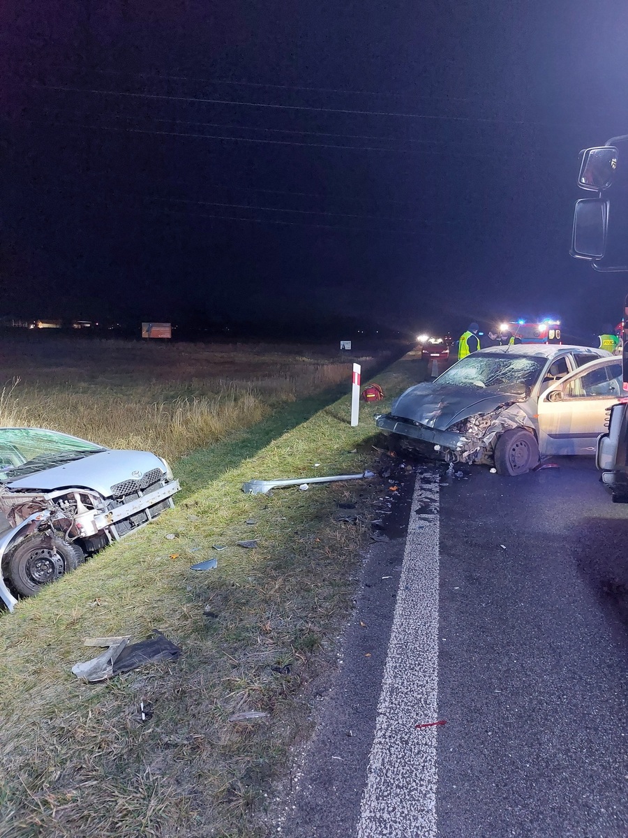 Do zdarzenia doszło około godziny 6.00 rano na drodze wojewódzkiej nr 482. – Z wstępnych ustaleń policjantów wynika, iż 57-letnia mieszkanka Chojęcina, kierując samochodem marki Toyota z nieustalonej na tą chwilę przyczyny zjechała na przeciwległy pas ruchu i uderzyła w prawidłowo jadący z naprzeciwka pojazd marki Ford, którym kierował 52-letni mieszkaniec miejscowości Olszowa – informuje sierż. Rafał Stramowski, oficer prasowy KPP w Kępnie.